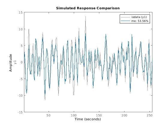 y = sim(m0,u,simOptions('AddNoise',true));Представляйте данные моделирования как iddata объект.
