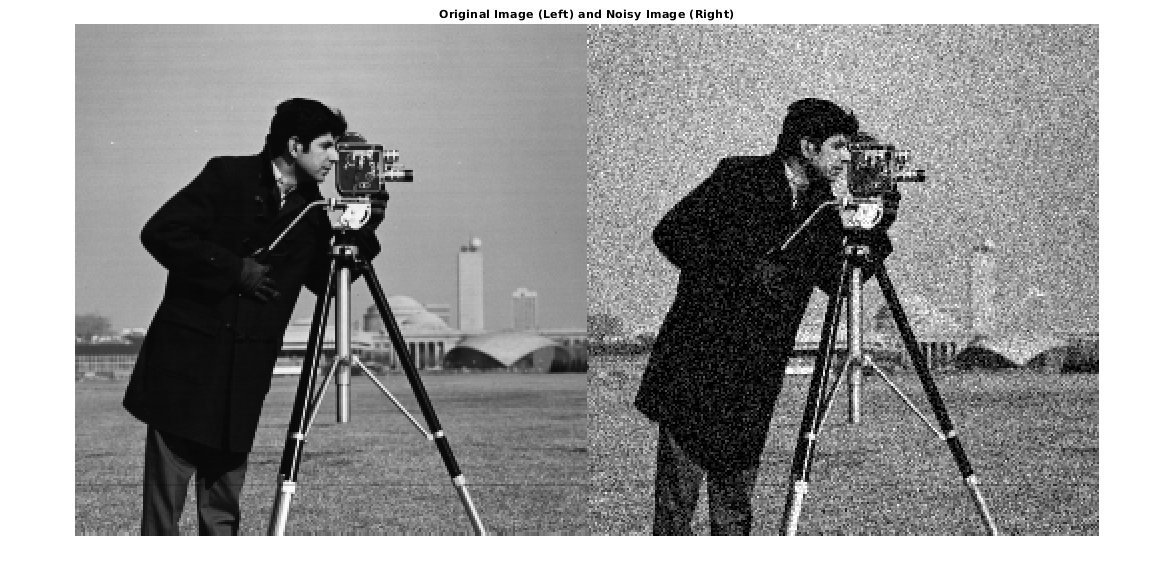 title('Original Image (Left) and Noisy Image (Right)')