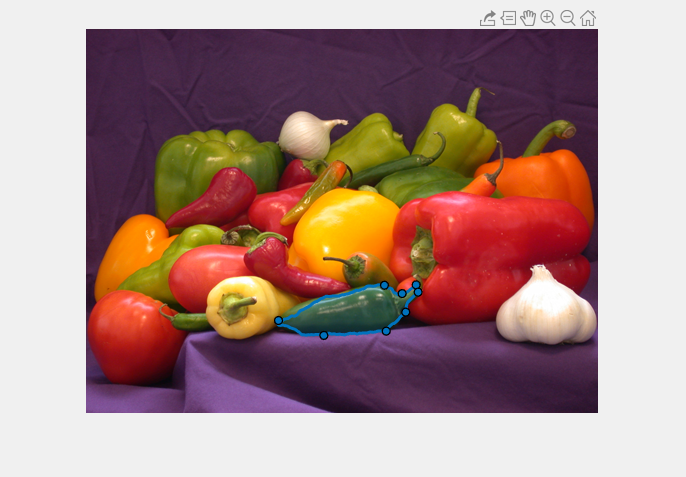 | Удалите ROI. | Расположите указатель на ROI (не на вершине), щелкните правой кнопкой и выберите Delete Freehand из контекстного меню. Можно также удалить ROI программно с помощью delete метод объекта. |