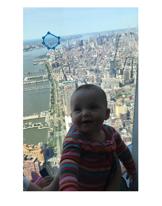drawpolygon функция возвращает Polygon Объект ROI. После создания используйте эти возможности объекта настроить внешний вид и поведение ROI.
