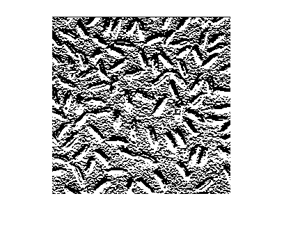 Отобразите результат операции. Поскольку область значений данных матрицы находится вне области значений отображения по умолчанию imshow, каждый пиксель с положительным значением отображается столь же белый, и каждый пиксель с отрицательной величиной или отображениями нулевого значения как черный. Это сложно, чтобы видеть ребра мелких частиц риса.