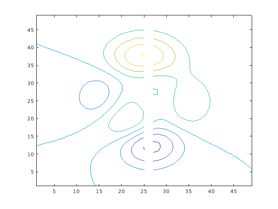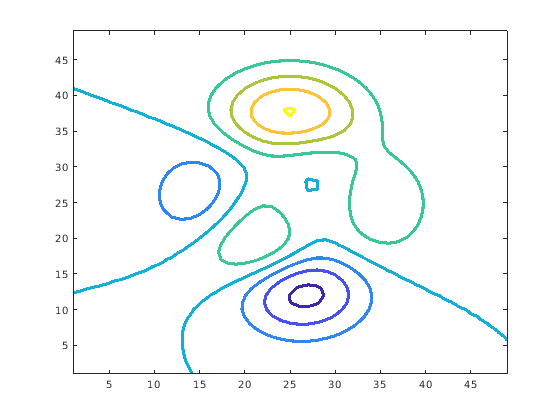 возвращает матрицу контура M = contour(___)M, который содержит (x, y) координаты вершин на каждом уровне.