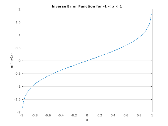 Для выражений формы erfinv(1-x), используйте дополнительную обратную функцию ошибок erfcinv вместо этого. Эта замена обеспечивает точность. Когда x близко к 1, затем 1 - x небольшое число и может быть округлено в меньшую сторону до 0. Вместо этого замена erfinv(1-x) с erfcinv(x).