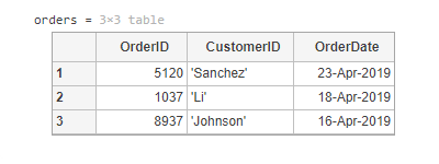 Выполните соединения, включая внутренние объединения и внешние соединения, на таблицах путем определения ключевых переменных — табличные переменные, совпадающие значения которых или значения ключа, определяют, какие строки объединены в выходную таблицу.