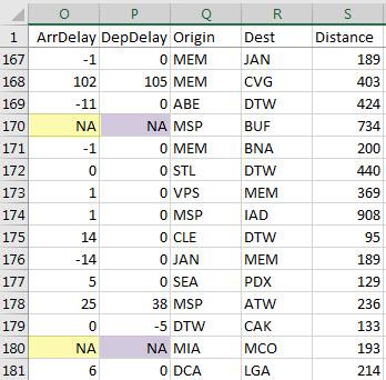 opts = setvaropts(opts,{'ArrDelay','DepDelay'},'TreatAsMissing','NA');Задайте действие для функции импорта, чтобы взять при импорте недостающих экземпляров. Смотрите ImportOptions страница свойств для большего количества опций.