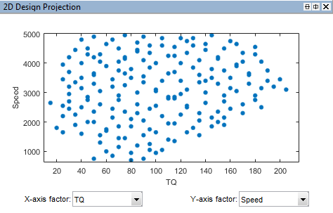 Второй проект, gasolineOneStageNonIdle, другая Последовательность Sobol заполняет проект, чтобы охватить ненеактивный рабочий диапазон механизма.