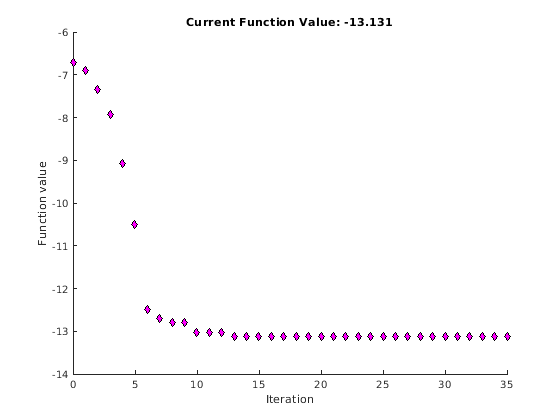 fminsearch использует симплексный метод поиска Lagarias и др. [1]. Это - прямой метод поиска, который не использует числовые или аналитические градиенты в качестве в fminunc. Алгоритм описан подробно в fminsearch Алгоритме. Алгоритм, как гарантируют, не будет сходиться к локальному минимуму.