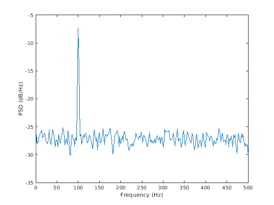 [___] = pwelch(___, возвращает оценку PSD если spectrumtype)spectrumtype задан как 'psd' и возвращает спектр мощности если spectrumtype задан как 'power'.