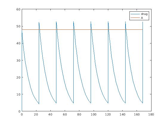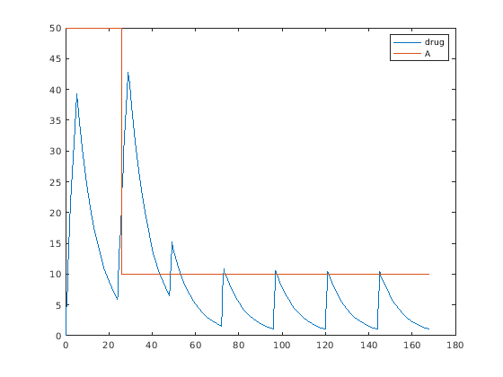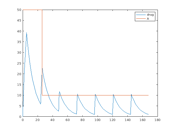 Можно установить эти свойства дозы на параметры модели: AmountИнтервал, Rate, RepeatCountВремя начала, LagParameterName и DurationParameterName. Можно установить эти свойства, кроме LagParameterName и DurationParameterName, или к числовому значению или к имени ограниченного по объему моделью параметра (как вектор символов или строка). Параметризация свойств дозы обеспечивает больше гибкости для различных приложений дозирования, таких как масштабирование суммарной дозы массой тела. Для получения дополнительной информации смотрите Параметрированные и Адаптивные Дозы.