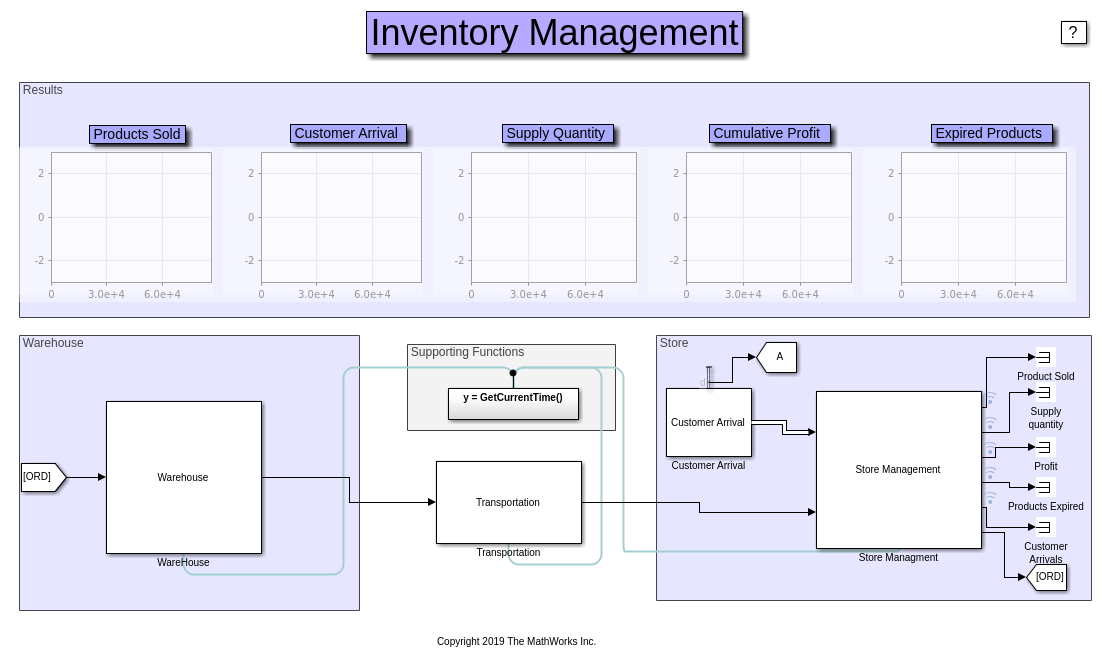 В этом примере показано, как смоделировать планирование ресурса с помощью обмена данными между блоком MATLAB Discrete-Event System и Блоком памяти Хранилища данных.
