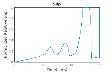 Затем мы симулируем более реалистический сценарий CAN с некоторым стохастическим сетевым трафиком. Этот фоновый трафик приводит к задержкам доставки сообщений в сети. Чтобы симулировать это, мы вручную устанавливаем Ручной Переключатель, содержавший в фоновом режиме блок подсистемы Трафика к позиции "ON". Путем установки Ручного Переключателя на это положение мы позволяем блок Step Function, который также содержится в фоновом режиме блок подсистемы Трафика, чтобы ввести трафик сети. В этой модели блок Step Function сконфигурирован, чтобы вывести значение во времени симуляции, секунды T=6. Если мы контрастируем обновленные результаты симуляции с теми из нашего предыдущего идеального сценария, мы видим, что введение доставки сообщений задерживается к сетевым результатам в намного более плохом ответе промаха от системы ABS относительно скорости колеса.
