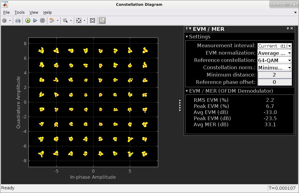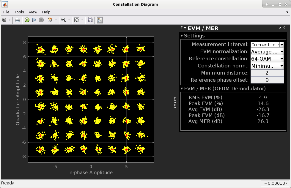 Ручной переключатель переключается, чтобы включить алгоритм DPD. Когда переключено, средний MER улучшен с 26 дБ приблизительно до 33 дБ приблизительно в 0,1 мс времени симуляции.