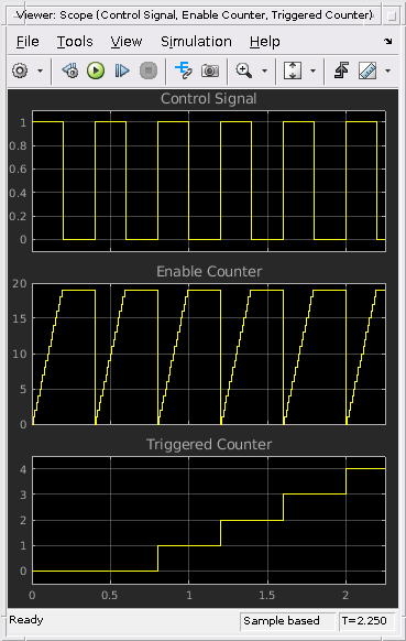Блок Enable позволяет внешнему сигналу управлять выполнением подсистемы или модели. Чтобы добавить эту функциональность, добавьте блок в блок Subsystem или на корневом уровне модели, на которую ссылаются в блоке Model.