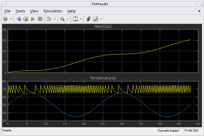 Управление симуляцией — модели Debug из окна Scope с помощью Run, Step Forward и кнопок на панели инструментов Step Backward.