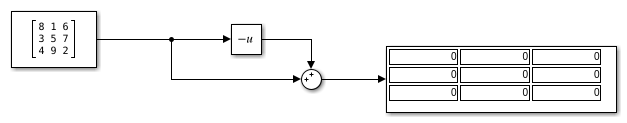 Port_1 — Отрицание входного сигналаОтрицание входного сигнала. Выход имеет совпадающий тип данных и размерности как вход.