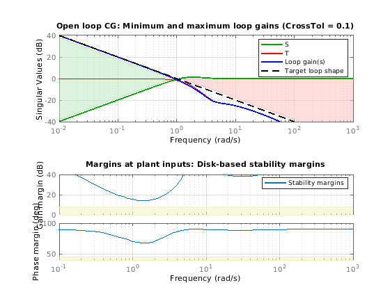 Нормированные многоконтурные дисковые поля при вводах и выводах объекта. Для получения дополнительной информации о дисковых полях, смотрите, что Анализ Устойчивости Использует Дисковые Поля (Robust Control Toolbox).