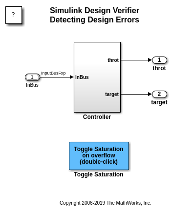 Обнаружение ошибок проектирования включает мертвую логику, целочисленное переполнение, деление на нуль и нарушения свойств проекта и утверждений. Simulink® Design Verifier™ использует формальные методы, чтобы идентифицировать дефицитные ошибки проектирования в моделях, не требуя обширных тестов или запусков симуляции. Вы используете Simulink Design Verifier, чтобы подсветить блоки в модели, содержащей ошибки проектирования, и блокируется доказанный быть без них. Для каждого блока с ошибкой вы вычисляете контуры диапазона сигнала и генерируете тестовый вектор, который воспроизводит ошибку в симуляции.