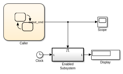 Например, в этой модели, запускаемом фронтом выходном событии output_cmd активирует активированную подсистему.