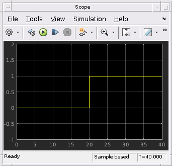Когда симуляция запускается, значение триггерного сигнала 0. Во время t = 20, график диспетчеризирует output_cmd, изменение значения триггера сигнализирует к 1. Активированная подсистема становится активной и выполняется во время того временного шага. Поскольку никакие другие широковещательные сообщения события не происходят, активированная подсистема продолжает выполняться на каждом временном шаге до концов симуляции в t = 40. Блок Display показывает окончательное значение 40.