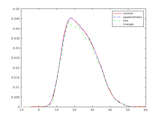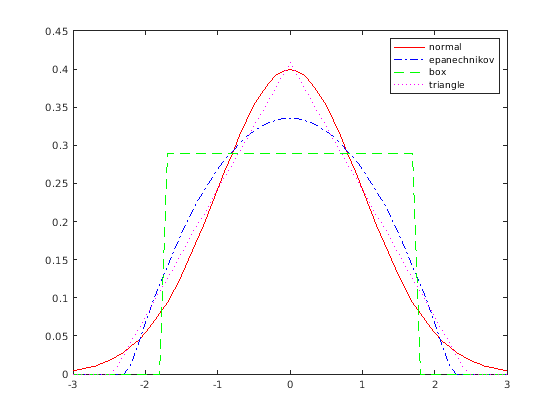 hname = {'normal' 'epanechnikov' 'box' 'triangle'};