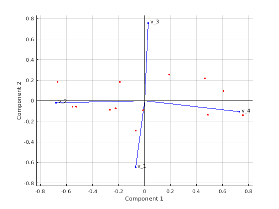 В этом случае, pca вычисляет (i, j) элемент ковариационной матрицы с помощью строк без NaN значения в столбцах i или j X. Обратите внимание на то, что получившаяся ковариационная матрица не может быть положительна определенный. Эта опция применяется когда алгоритм pca использование является разложением собственного значения. Когда вы не задаете алгоритм, как в этом примере, pca наборы это к 'eig'. Если вы требуете 'svd' как алгоритм, с 'pairwise' опция, затем pca возвращает предупреждающее сообщение, устанавливает алгоритм на 'eig' и продолжается.