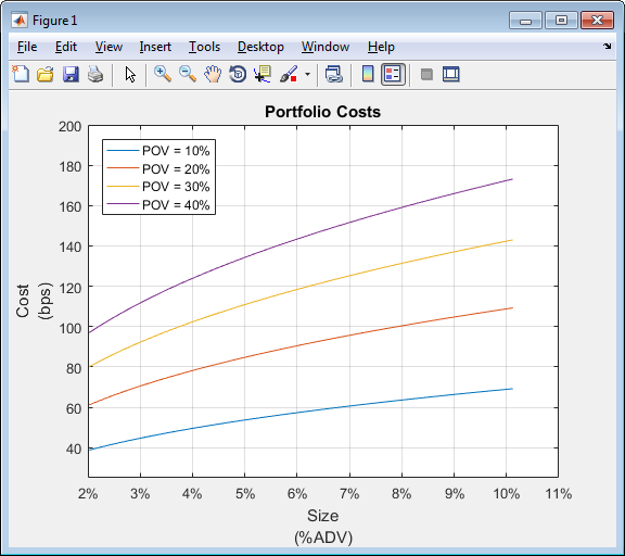 возвращает стоимость влияния на рынок выполнения порядка для использования портфеля: pcc = portfolioCostCurves(k,portfolio,tradeQuantity,tqRange,tradeStrategy,tsRange)
