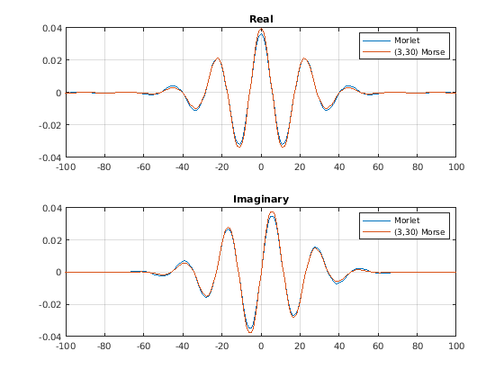 Использование cwtfilterbank создать набор фильтров непрерывного вейвлета преобразовывает (CWT). Вейвлетом по умолчанию, используемым в наборе фильтров, является аналитический Морзе (3,60) вейвлет. Можно варьироваться пропускная способность времени и параметры симметрии для вейвлетов Морзе, чтобы настроить вейвлет Морзе для потребностей. Можно также использовать аналитический Morlet (Габор) вейвлет или ударить вейвлет. При анализе нескольких сигналов в частоте времени, для повышенной вычислительной эффективности, можно предварительно вычислить фильтры однажды и затем передать набор фильтров как вход к cwt. С набором фильтров можно визуализировать вейвлеты вовремя и частоту. Можно также создать наборы фильтров с определенной частотой или областями значений периода, и измерить пропускную способность на 3 дБ. Можно определить добротность для вейвлетов в наборе фильтров.