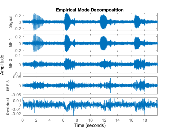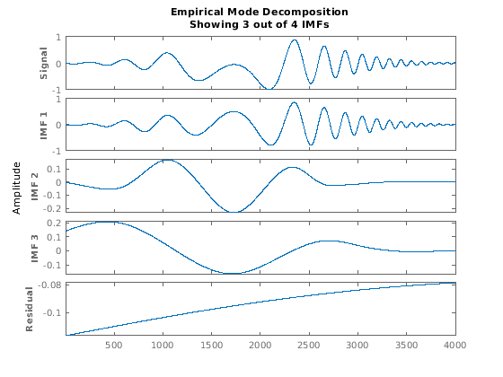 emd (Signal Processing Toolbox) разлагает набор данных x на конечное число внутренних функций режима.