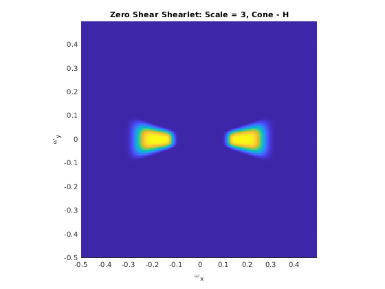 Постройте один из shearlets в плоскости частоты. Поскольку shearlet соответствует нулевому сдвигу, подтвердите, что частотная характеристика сконцентрирована или вдоль горизонтальной или вдоль вертикальной оси.