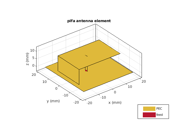pifa объект является плоской инвертированной-F антенной. Антенна PIFA по умолчанию строится в начале координат. Точка канала вдоль антенны.