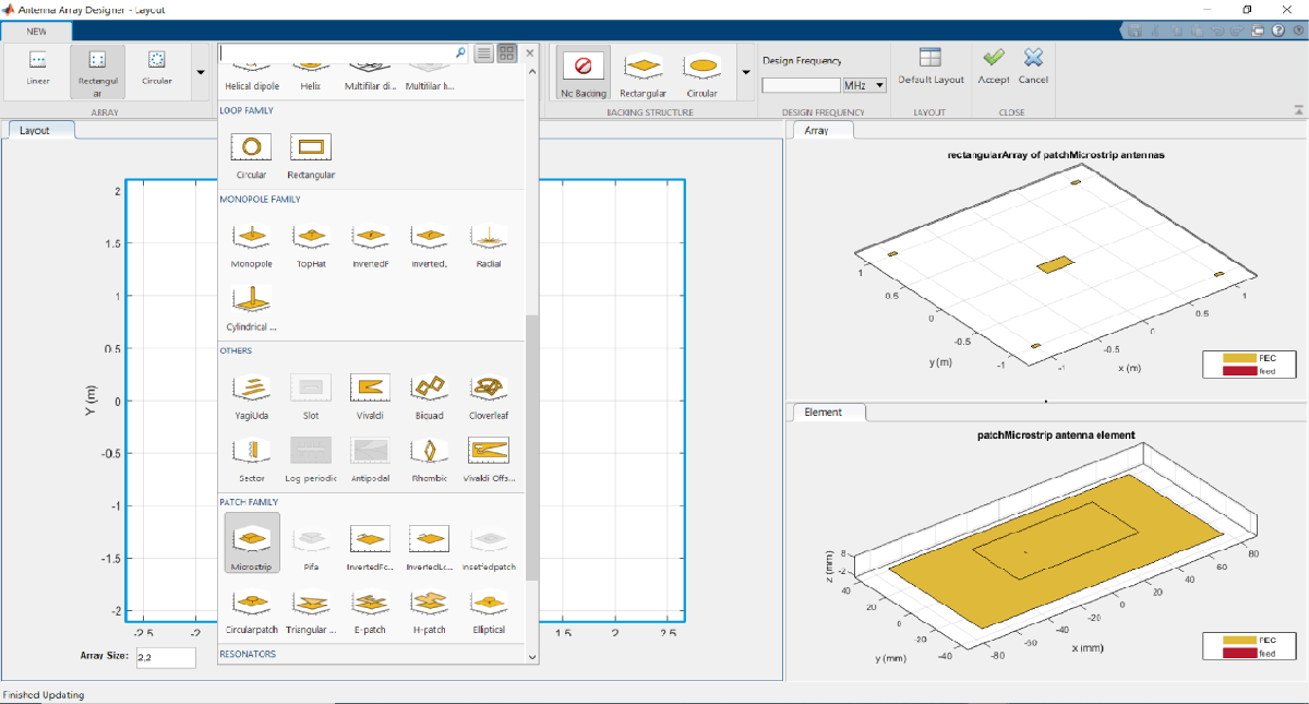 В Новой вкладке выберите Rectangular from Array Gallery. Выберите Antenna Gallery> Microstrip под семейством Закрашенных фигур.