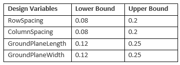 Переменные проекта: RowSpacing, ColumnSpacing, GroundPlaneLength and GroundPlaneWidth.