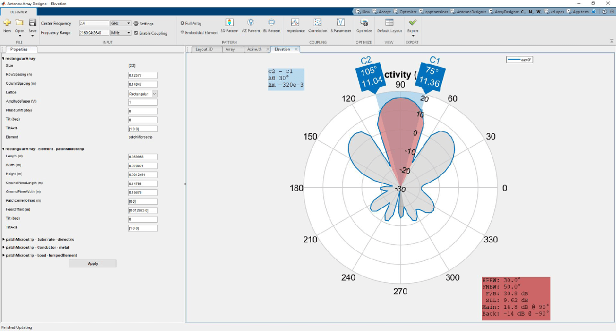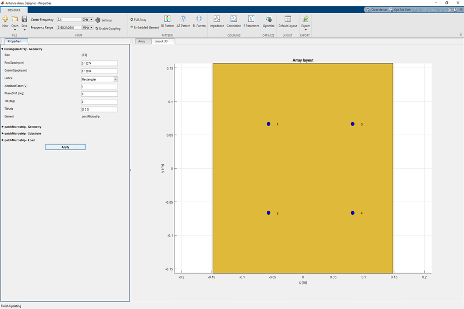 Введите antennaArrayDesigner в командной строке MATLAB®, чтобы открыть приложение.