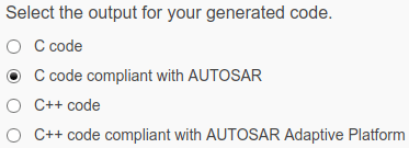 Работа через процедуру быстрого запуска. В Окне вывода выберите выходную опцию код С, совместимый с AUTOSAR.
