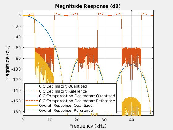 dsp.FilterCascade объект создает многоступенчатую Систему object™, который позволяет расположиться каскадом Системных объектов фильтра, задержек и скалярных усилений. Этот объект действует похожий на cascade функция. Однако cascade функция не поддерживает задержку как этап фильтра.