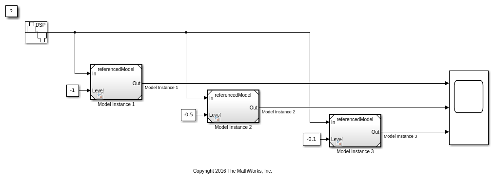 Чтобы переключиться между экземплярами, в меню Simulink Editor, на вкладке Simulation открывают галерею Prepare и выбирают Normal Mode Diagram> Subsystem & Model Reference> Model Block Normal Mode Visibility. Выберите Model Instance 3 и затем нажмите ОК.