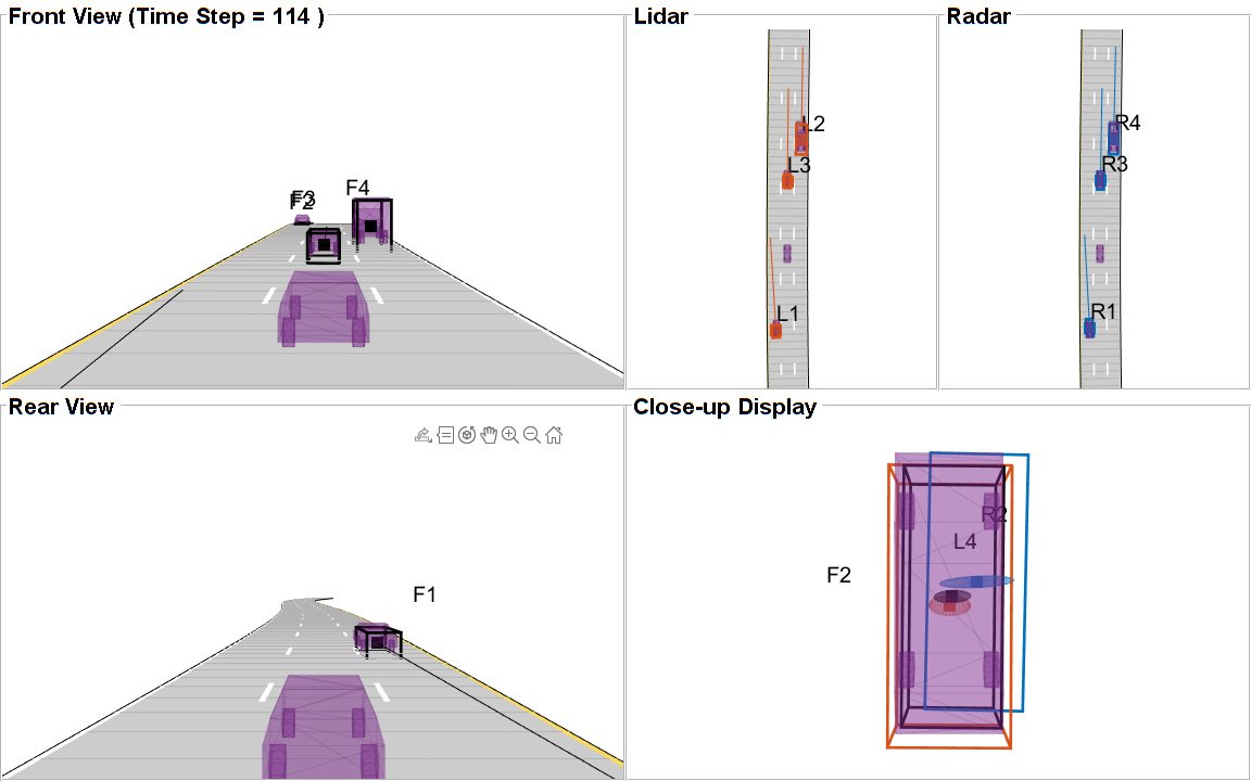 Можно создать мультиобъектные средства отслеживания, которые плавят информацию от различных датчиков. Используйте trackerGNN обеспечить одну гипотезу об отслеживаемых объектах. Используйте trackerTOMHT обеспечить несколько гипотез об отслеживаемых объектах. Используйте trackerJPDA присваивать несколько вероятных обнаружений отслеживаемым объектам. Используйте trackerPHD представлять отслеживаемые объекты с помощью функции плотности гипотезы вероятности (PHD). Используйте trackerGridRFS к отслеживаемым объектам с помощью основанного на сетке подхода доказательства заполнения. Используйте trackFuser плавить дорожки, сгенерированные путем отслеживания датчиков или средств отслеживания и архитектора, децентрализовало системы слежения.