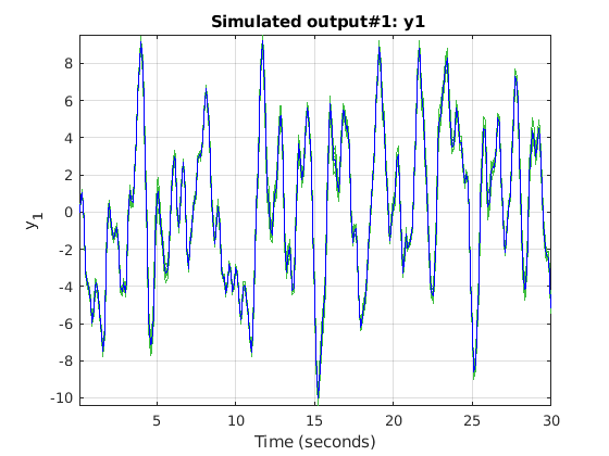 simsd( симулирует и строит ответ 10 встревоженной реализации идентифицированной модели sys,udata)sys. Входные данные симуляции udata используется для расчета симулированный отклик.