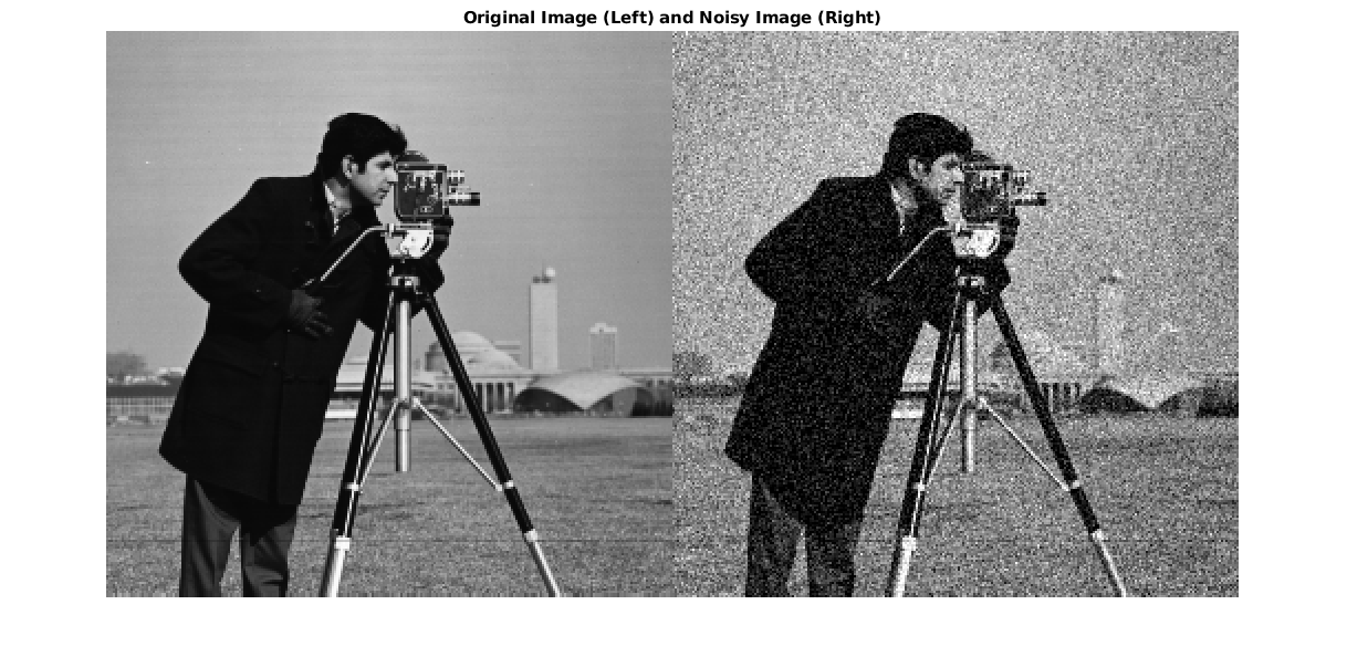 Figure contains an axes. The axes with title Original Image (Left) and Noisy Image (Right) contains an object of type image.