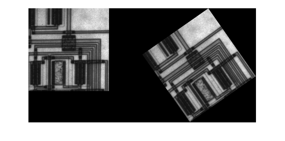 В этом примере показано, как вращать изображение с помощью imrotate функция. Когда вы вращаете изображение, вы задаете изображение, которое будет вращаться и угол поворота в градусах. Если вы задаете положительный угол поворота, изображение вращается против часовой стрелки; если вы задаете отрицательный угол поворота, изображение вращается по часовой стрелке.