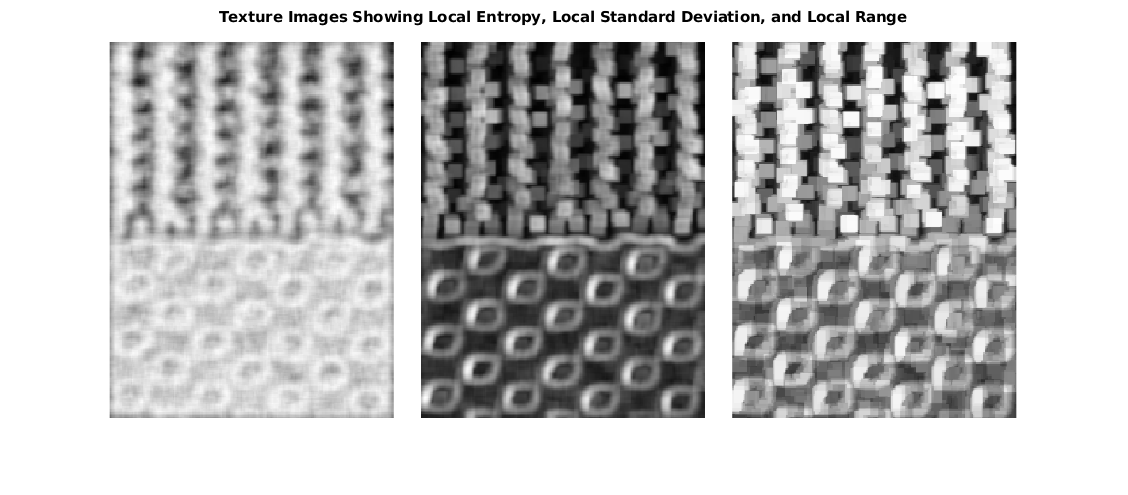 E = entropyfilt(I); S = stdfilt(I,ones(9)); R = rangefilt(I,ones(9));