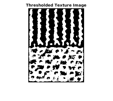 Этот пример продолжается путем обработки энтропийного изображения структуры Eim. Можно повторить подобный процесс для других двух типов изображений структуры с другими морфологическими функциями, чтобы достигнуть подобных результатов сегментации.