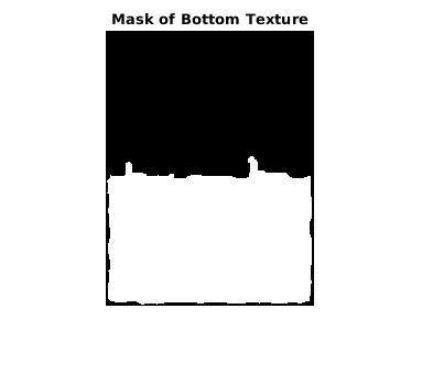 mask = imfill(closeBWao,'holes'); imshow(mask); title('Mask of Bottom Texture')