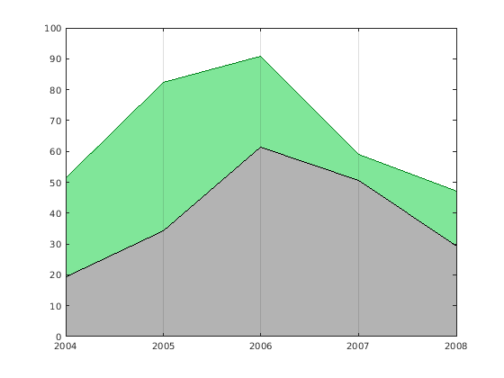 hold on area(years,expenses,'FaceColor',[0.7 0.7 0.7],'EdgeColor','k') hold off