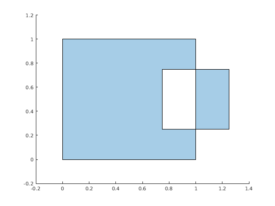 [ также возвращает информацию об отображении вершины в вершины в polyout,shapeID,vertexID] = xor(poly1,poly2)polyout к вершинам в poly1 и poly2. xor функционируйте только поддерживает этот синтаксис когда poly1 и poly2 скалярный polyshape объекты.