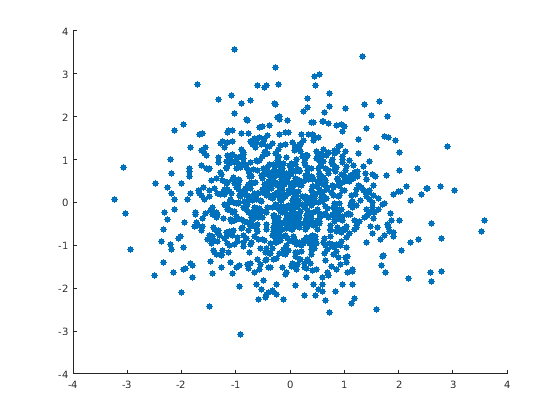 Создайте набор нормально распределенных случайных чисел. Затем создайте график рассеивания данных с заполненными маркерами.
