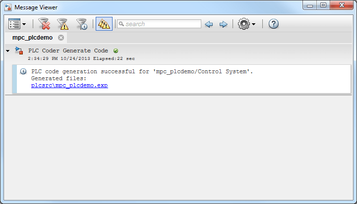 ### PLC code generation successful for 'mpc_plcdemo/Control System'.