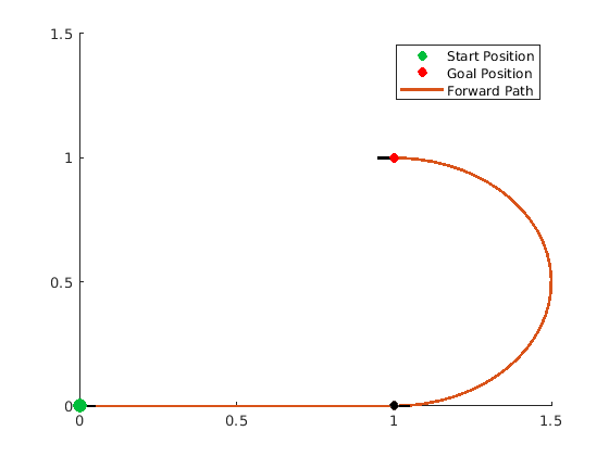 Figure contains an axes. The axes contains 10 objects of type line, scatter. These objects represent Forward Path, Start Position, Goal Position.