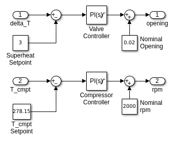 Поскольку двухфазная смесь вводит испаритель, входная температура испарителя, T5 является также температурой насыщения. Поэтому T6 - T5 представляет перегрев в испарителе, которым управляет клапан расширения.