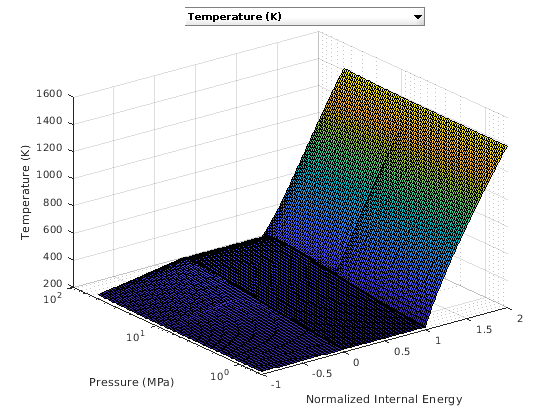 Следующие две фигуры строят свойства жидкости CO2 (R744) в зависимости от давления (p) и нормировали внутреннюю энергию (unorm) и в зависимости от давления (p) и определенную внутреннюю энергию (u), соответственно. Жидкость является a